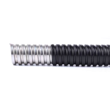 A flexible metal hose coated in plastic to protect cables from damage.